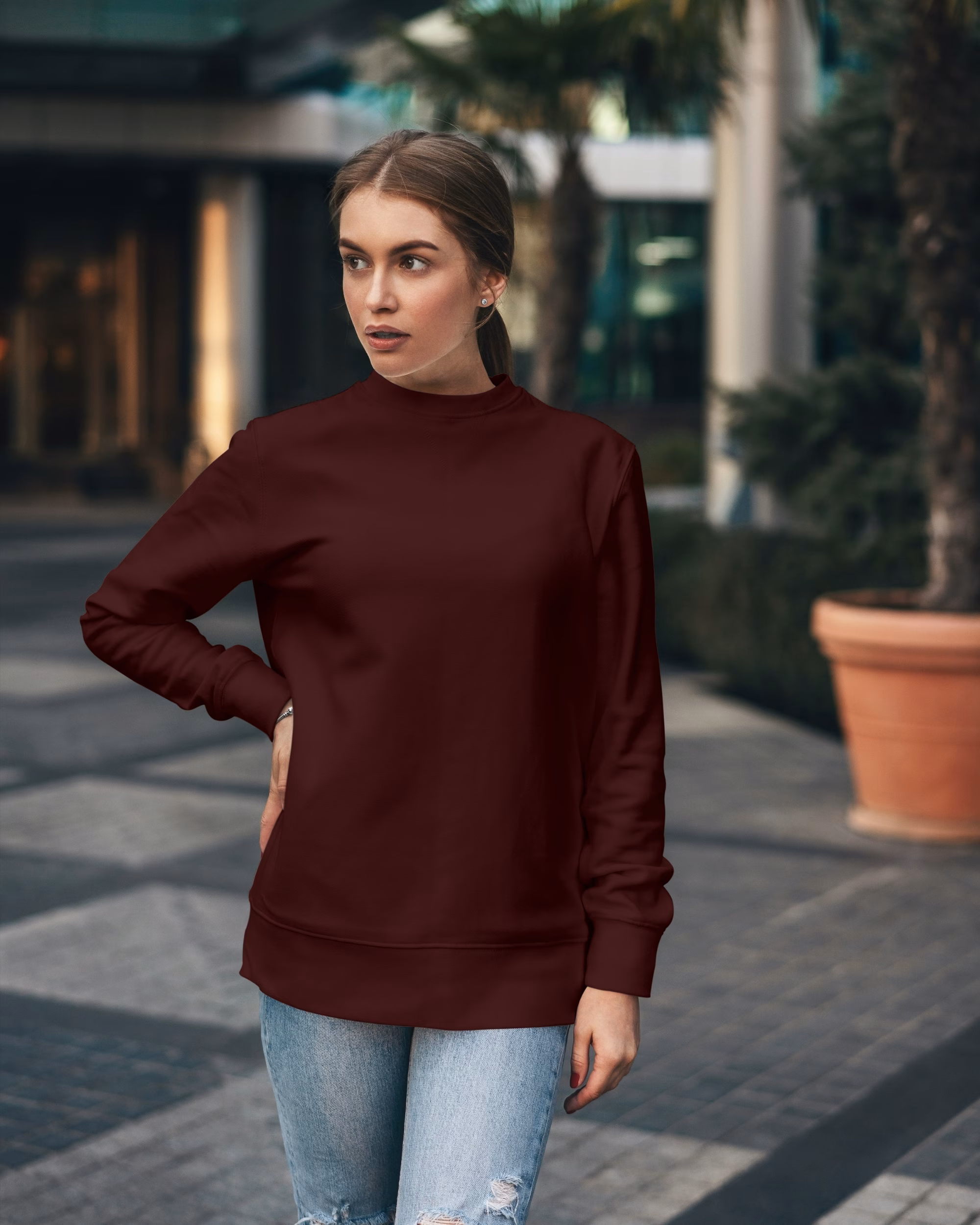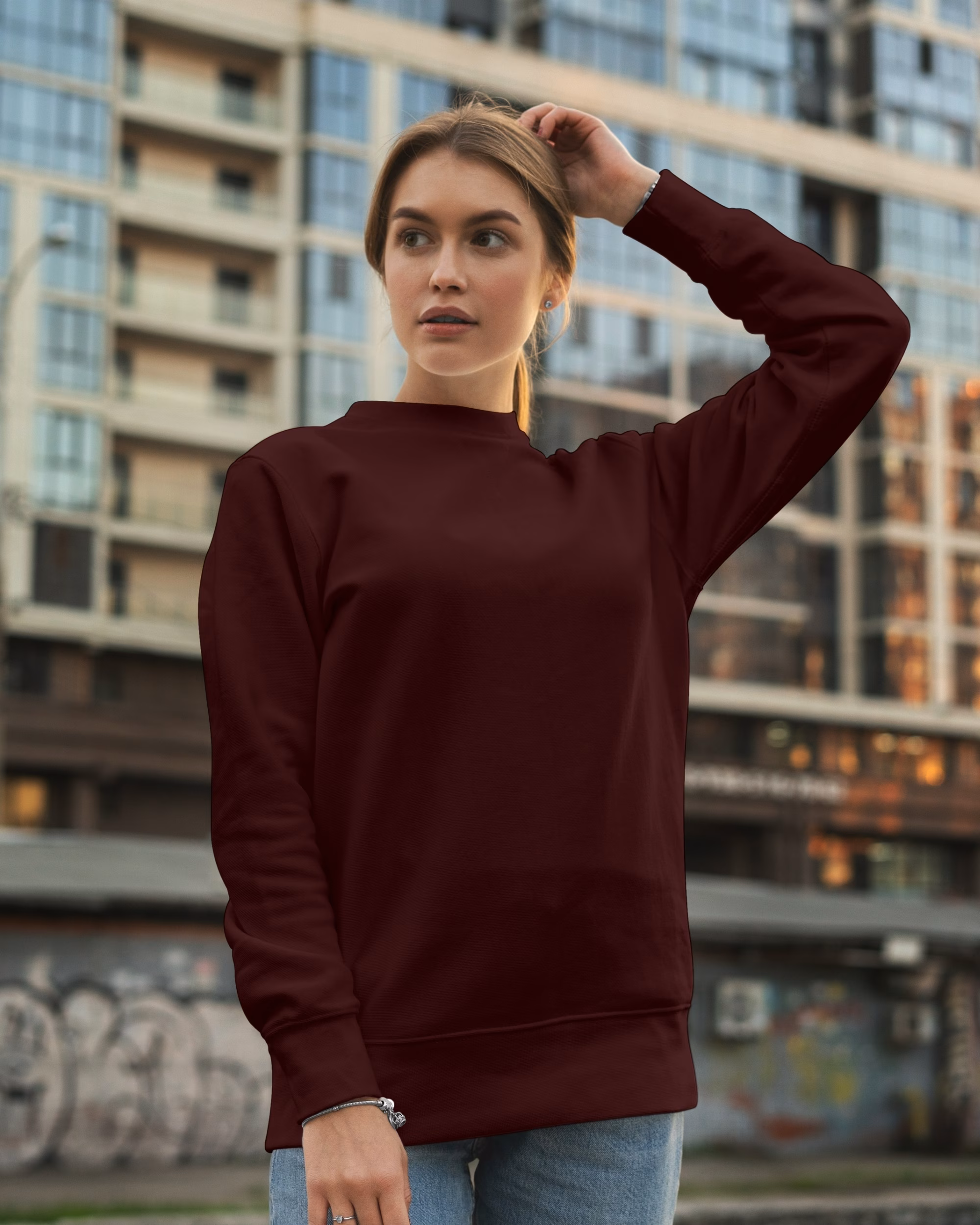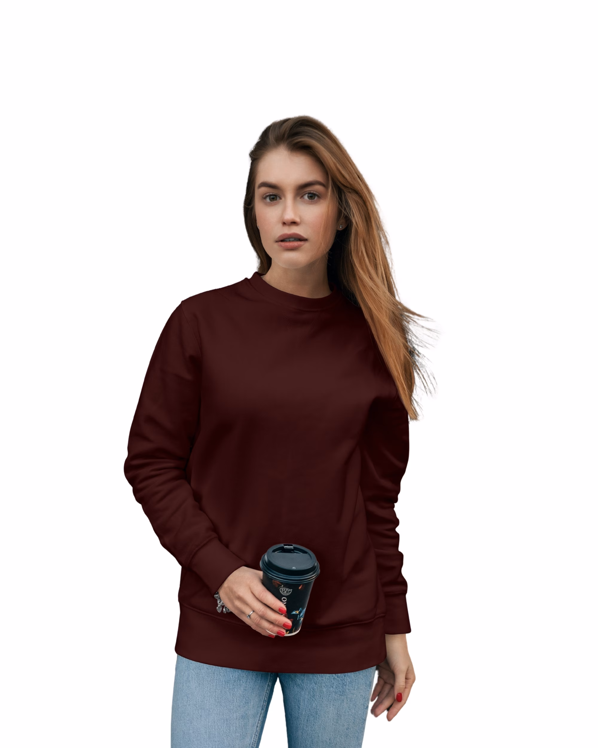 Indulge in the ultimate comfort with our luxurious Maroon sweatshirt, designed to elevate your autumn wardrobe. Crafted for warmth and style, this versatile piece effortlessly complements a chic tee and dark wash jeans, making it the perfect choice for a night out bowling with friends. Embrace the season in sophistication and enjoy the perfect blend of coziness and elegance.